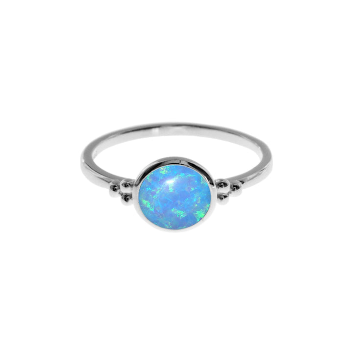 6mm Round blue opalique silver ring with ball detail