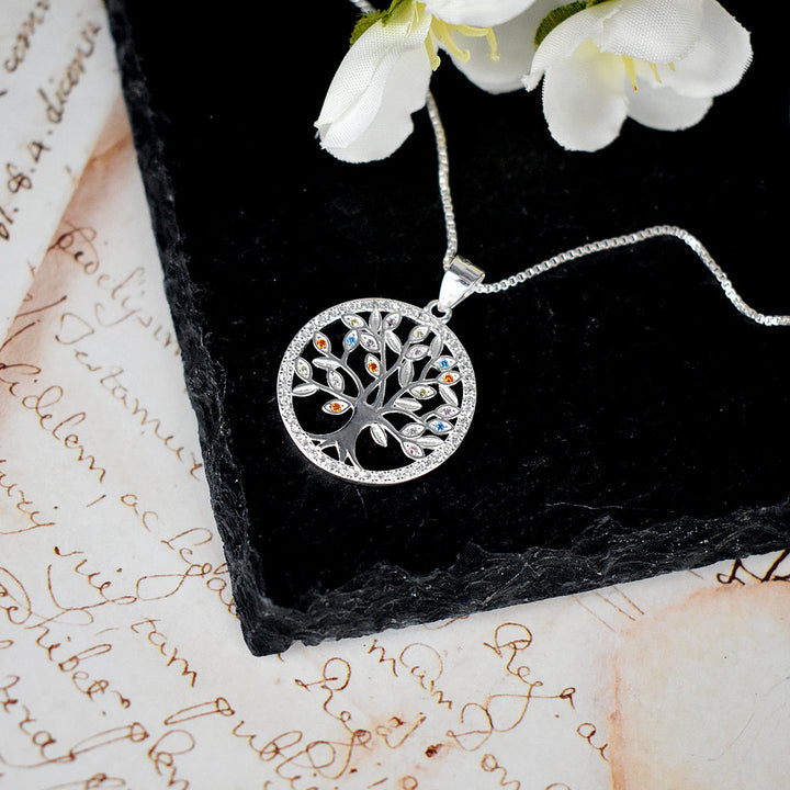 Rainbow cubic zirconia Tree of Life silver pendant with cubic zirconia surround