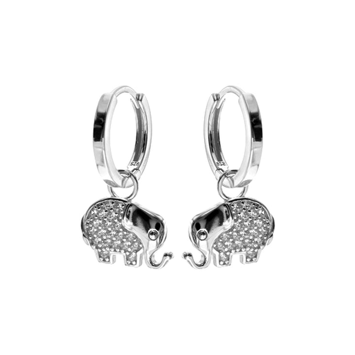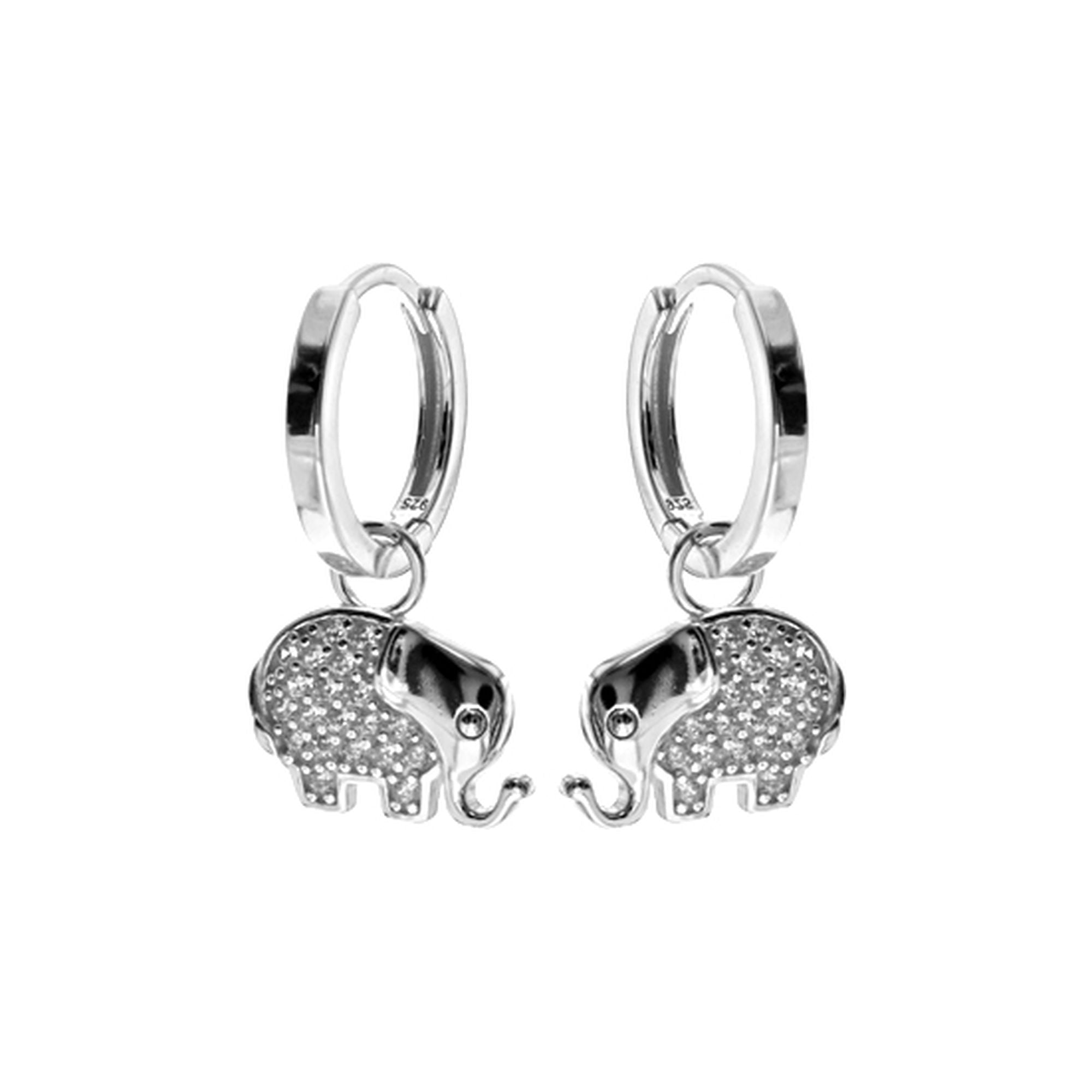 Silver sleeper earrings with encrusted cubic zirconia elephant charm