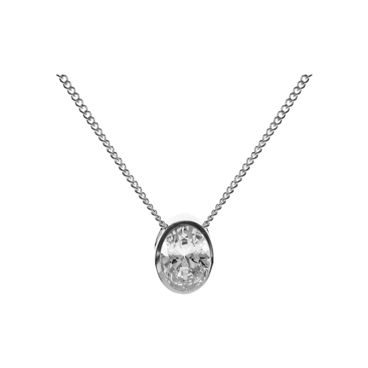 Simple oval cubic zirconia and 925 silver necklace