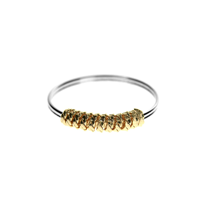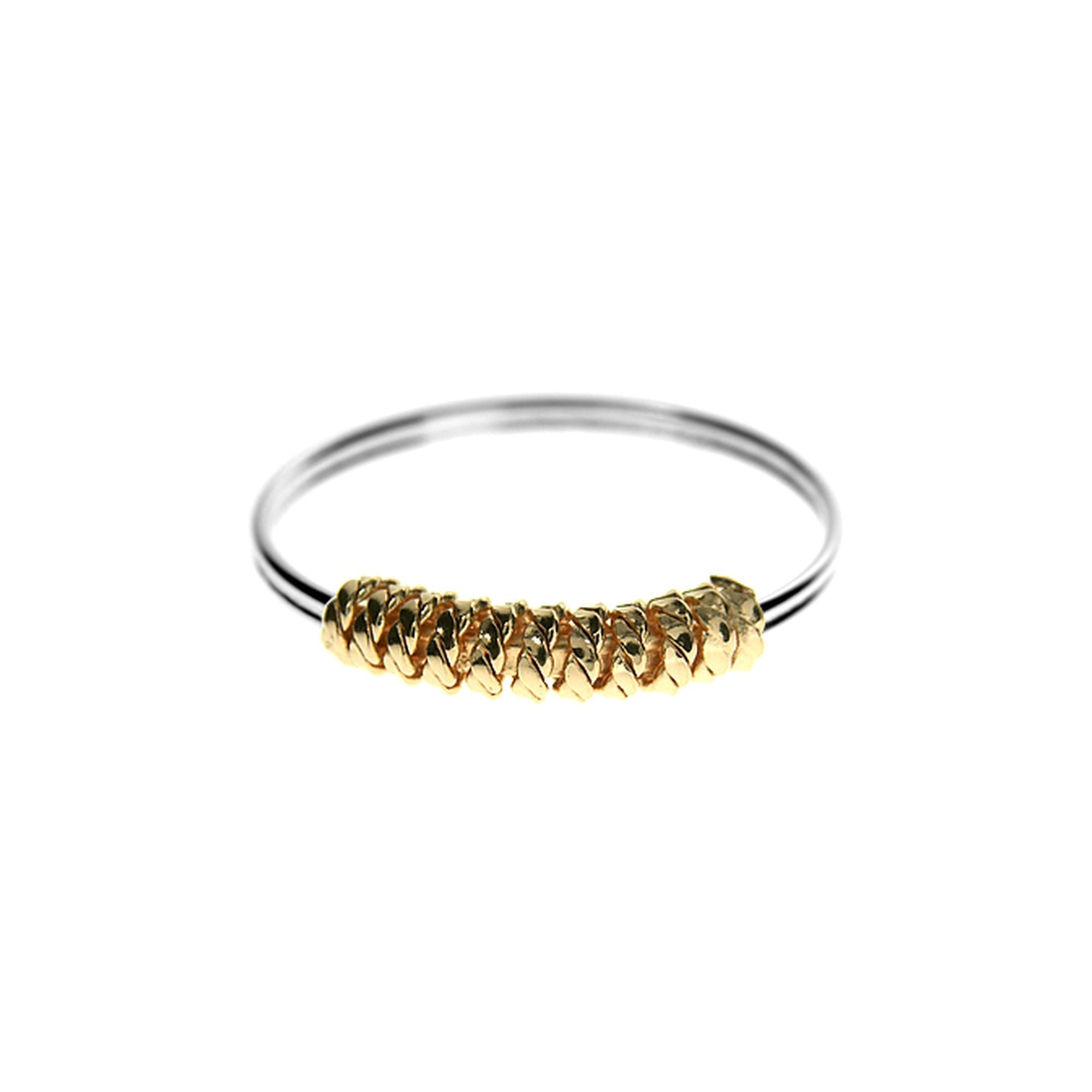 Simple ring with yellow gold plated coiled rope shoulder