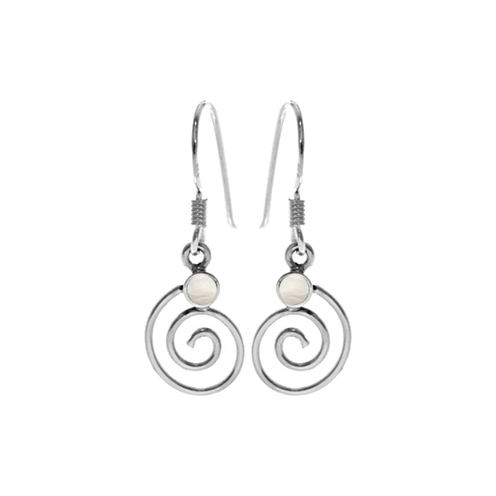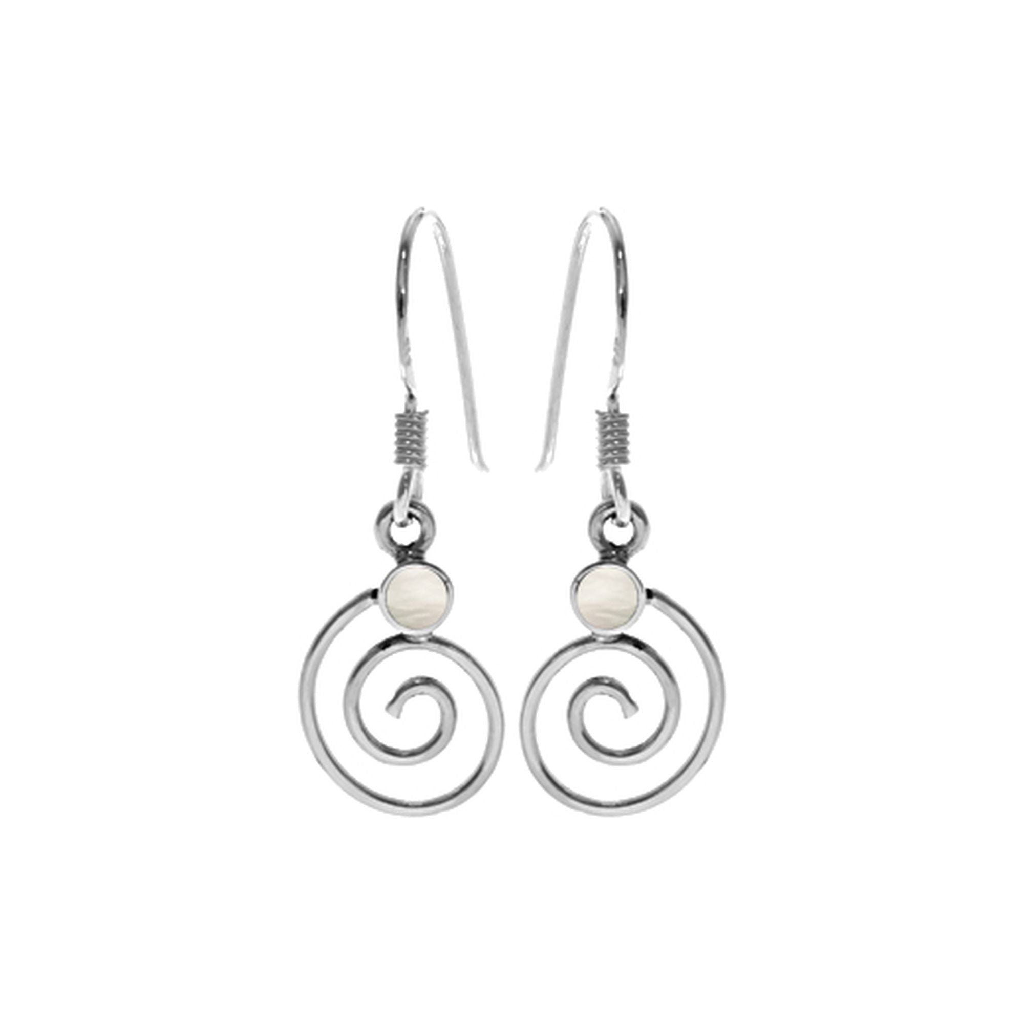 Small round MOP with fine silver swirl earrings