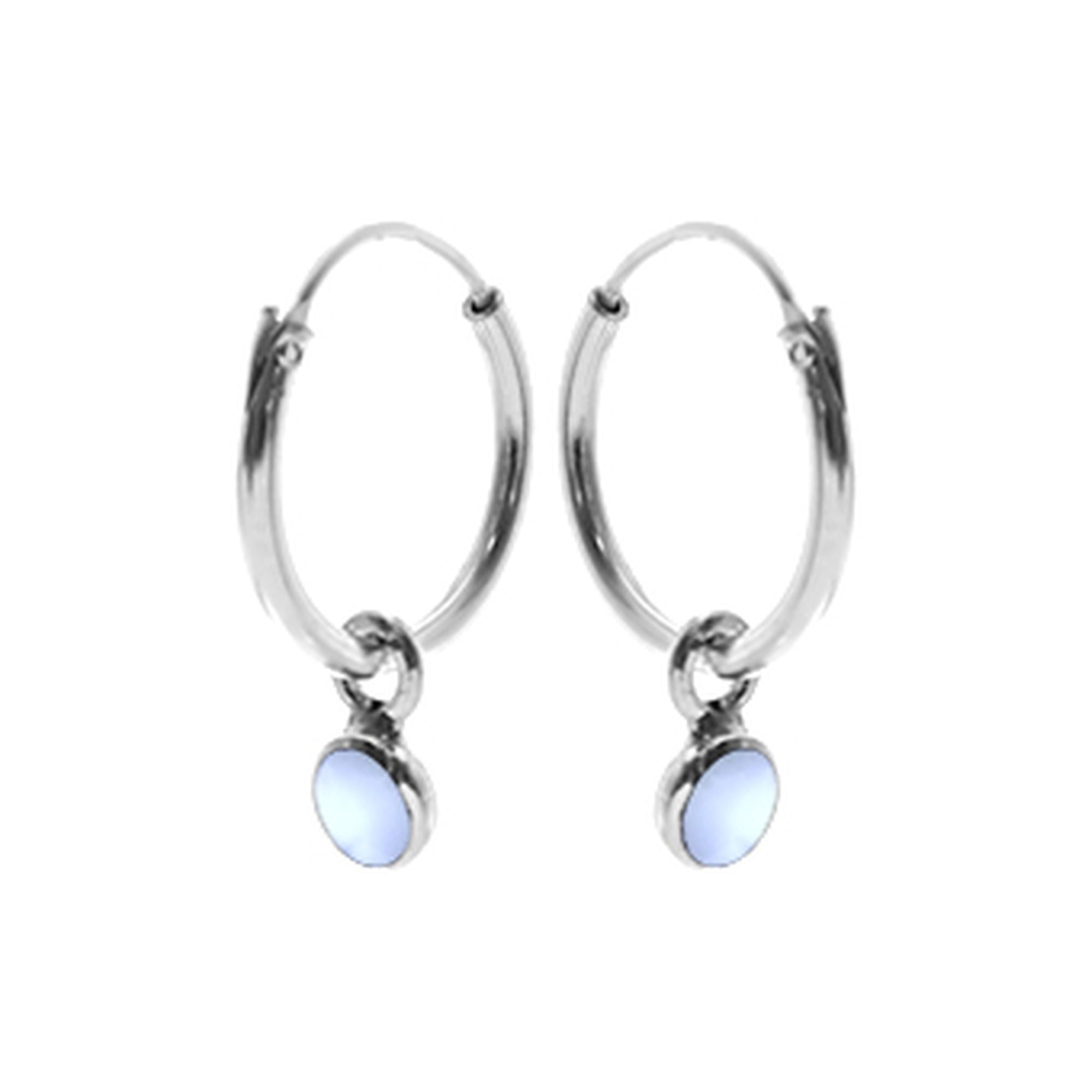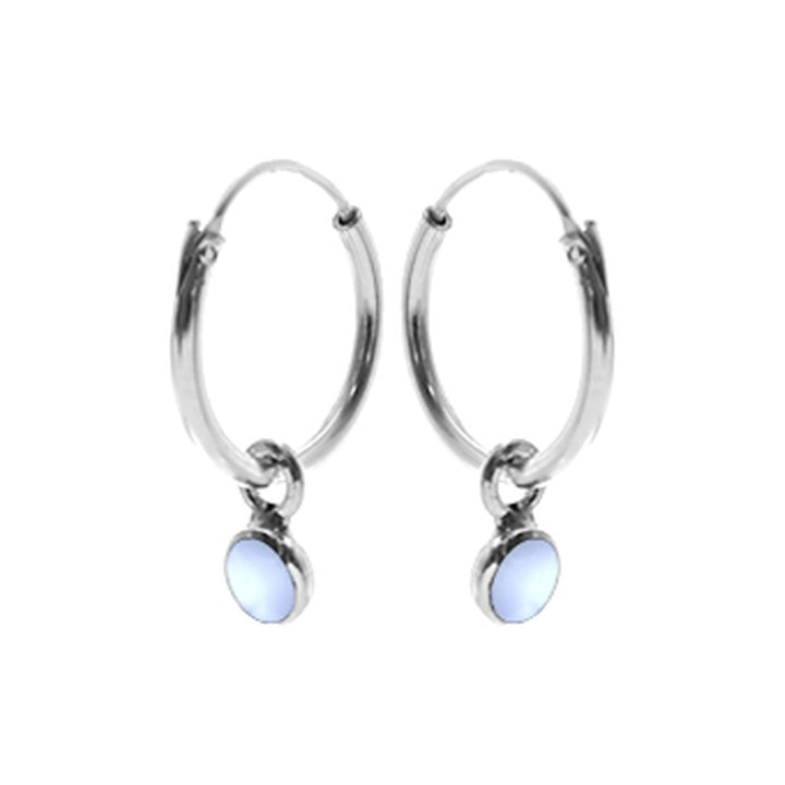 12mm silver hoop with diddy round blue MOP charm