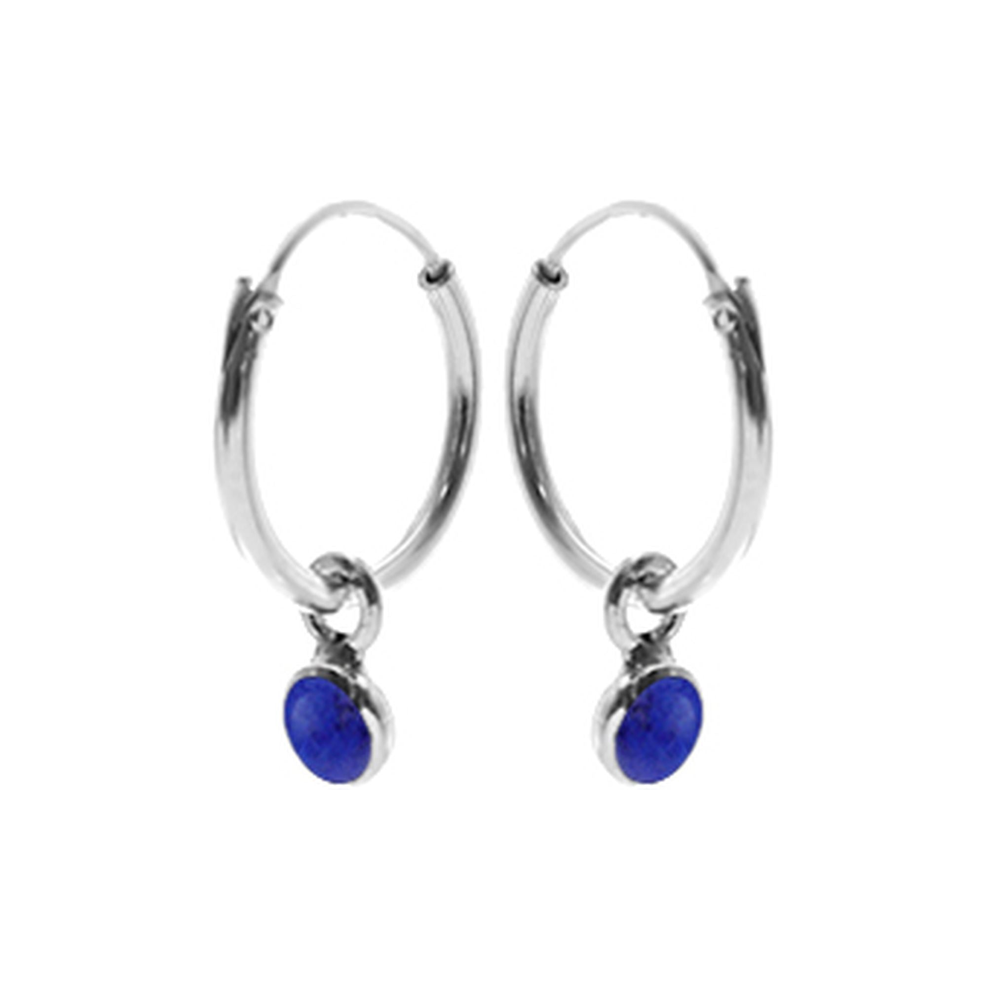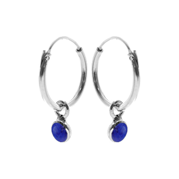 12mm silver hoop with diddy round synthetic lapis lazuli charm