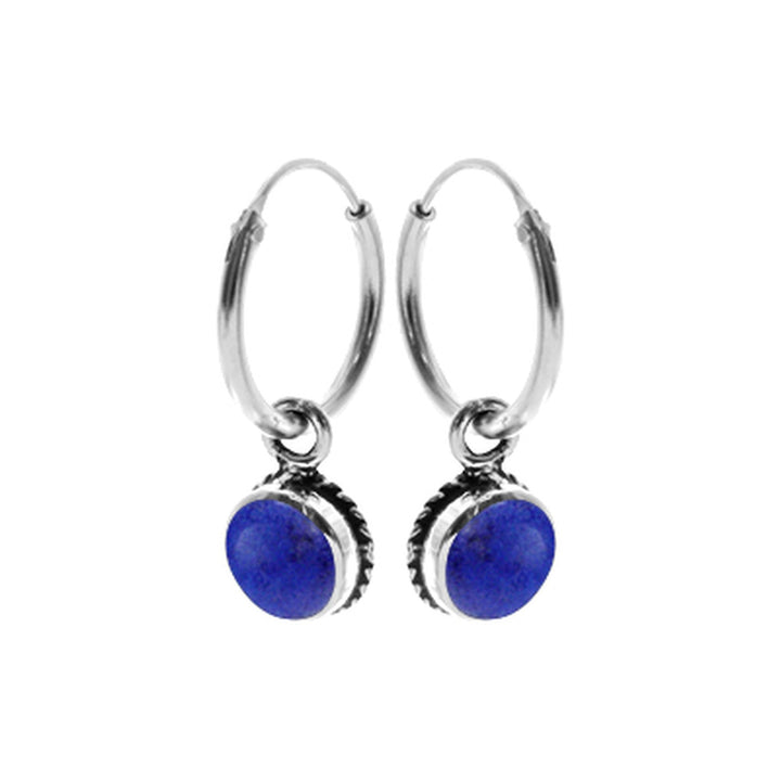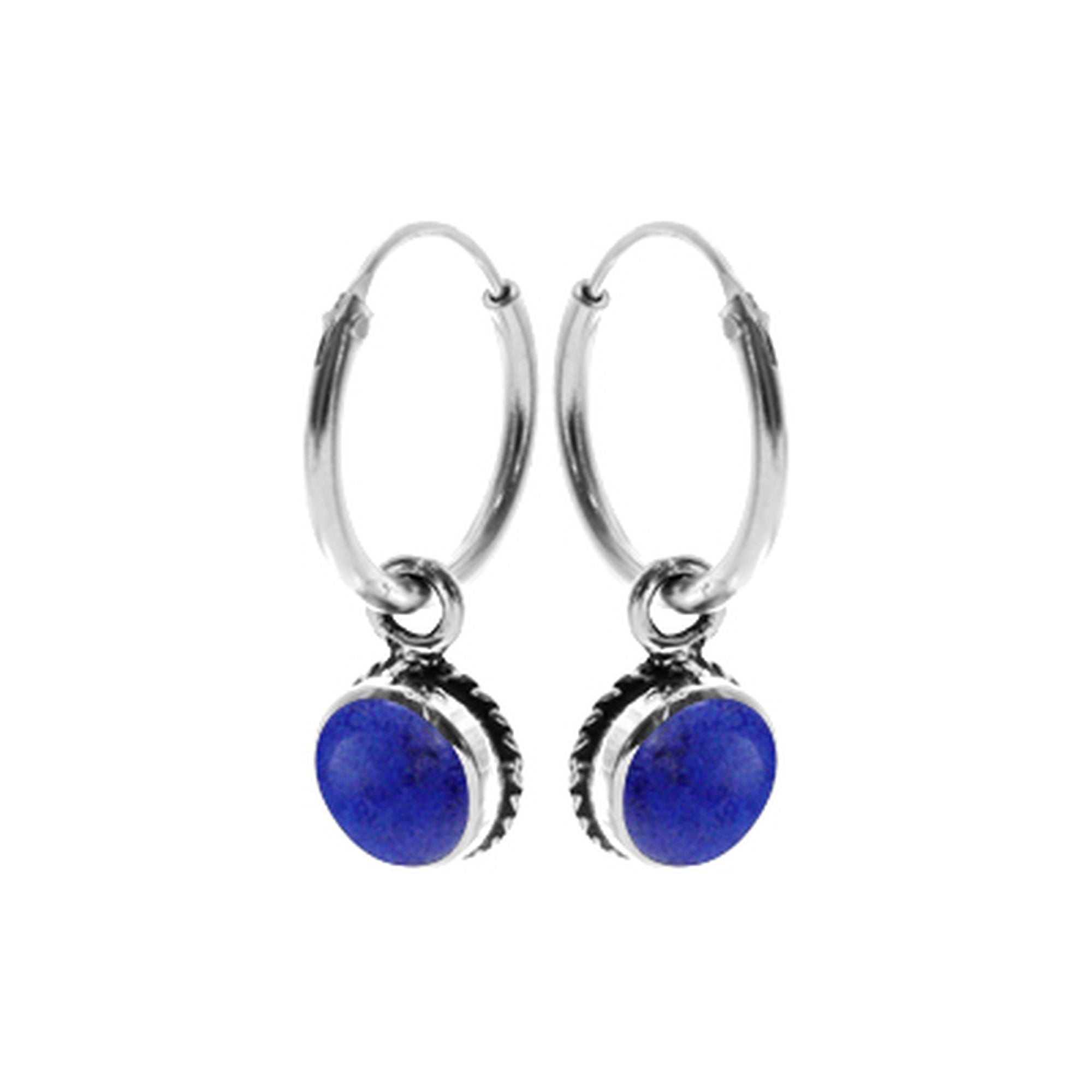 12mm Silver hoop with synthetic lapis lazuli charm rope surround