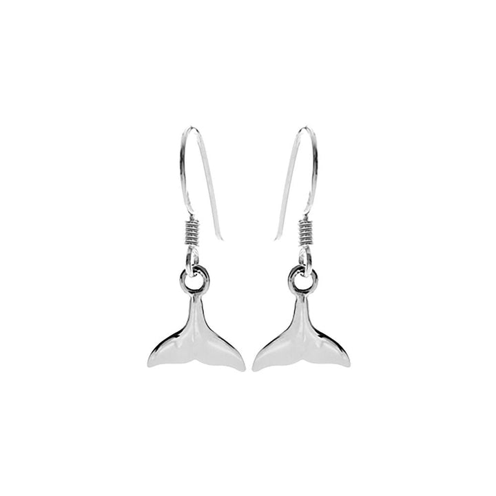 Silver whale tail dangly earrings