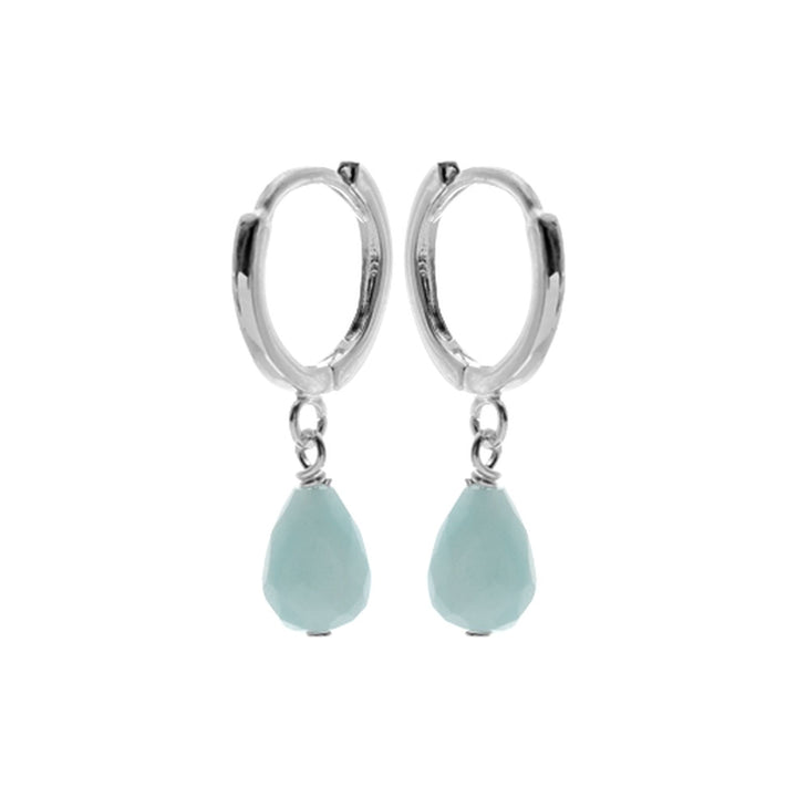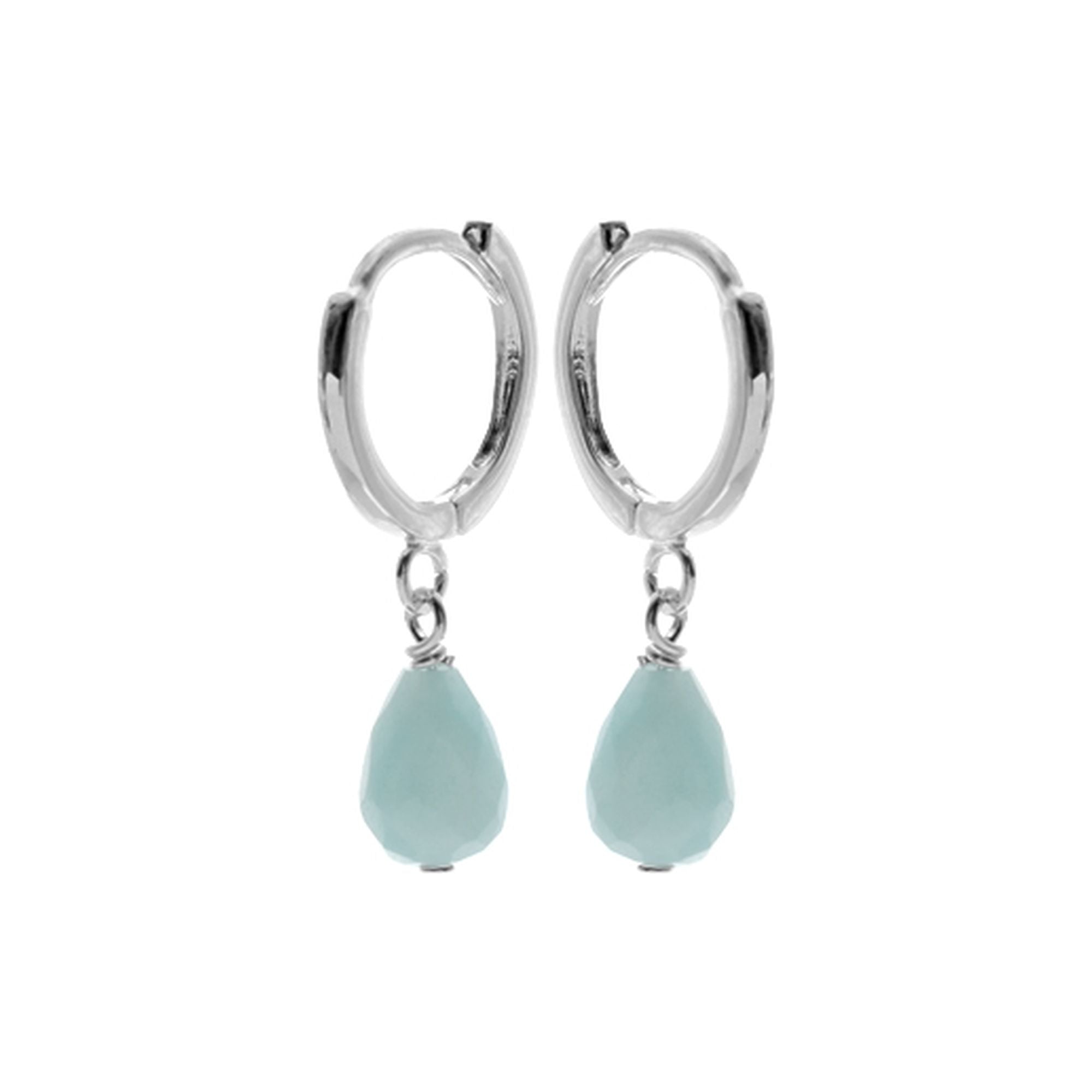 10mm Square profile silver huggies with briolette amazonite