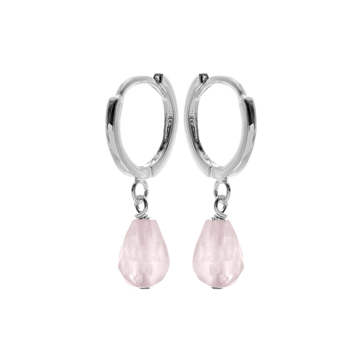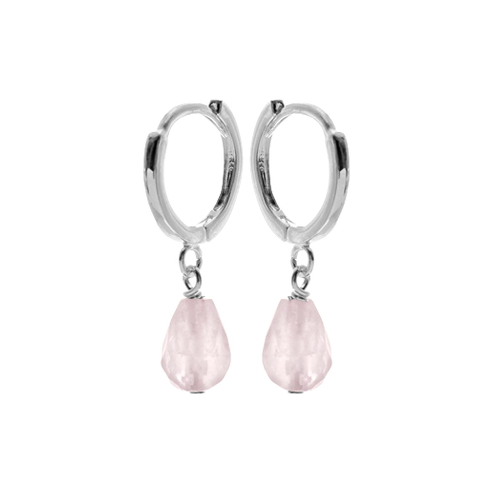 10mm square profile silver huggies with briolette rose quartz