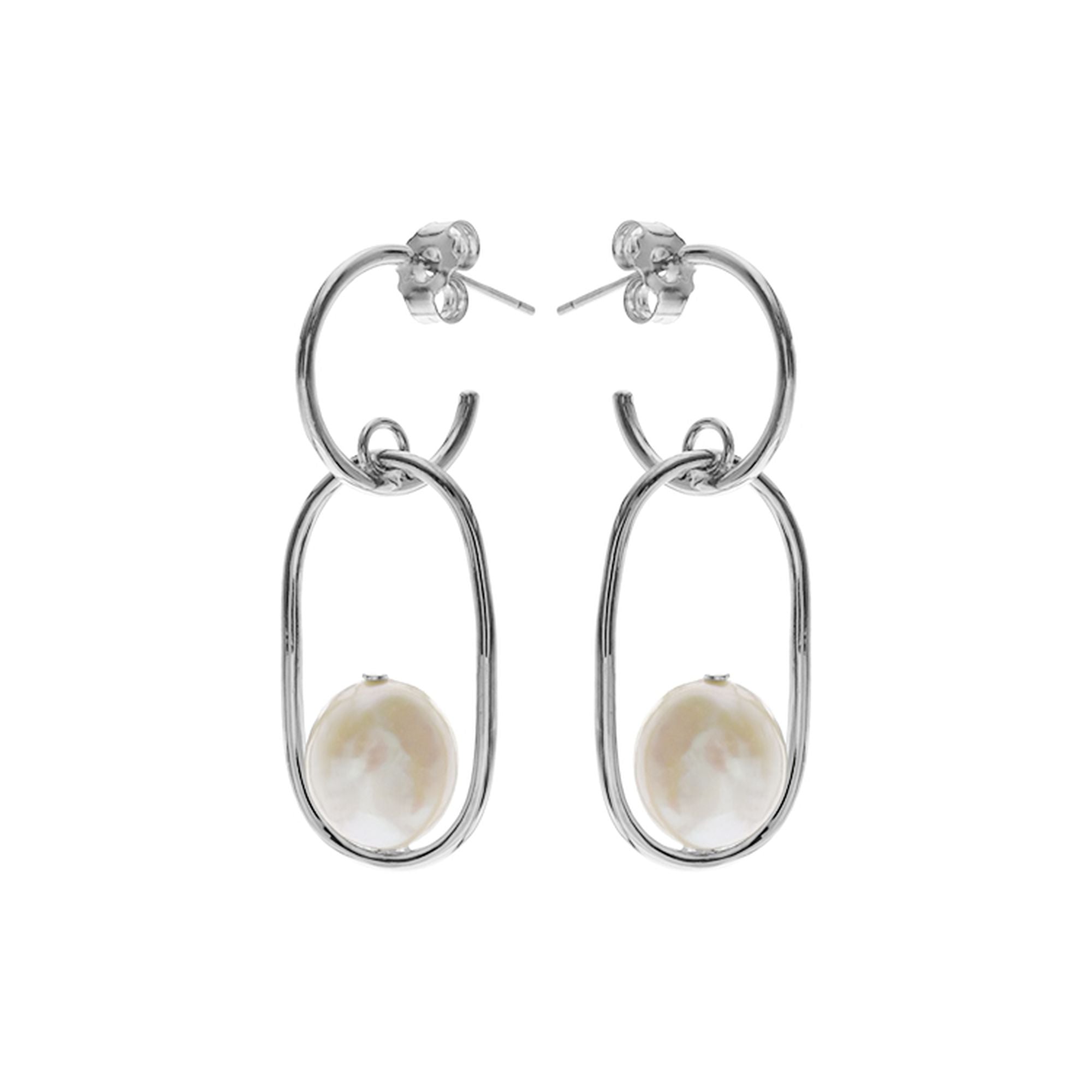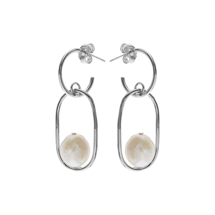 Silver 13mm stud top hoop and rounded rectangle with pearl