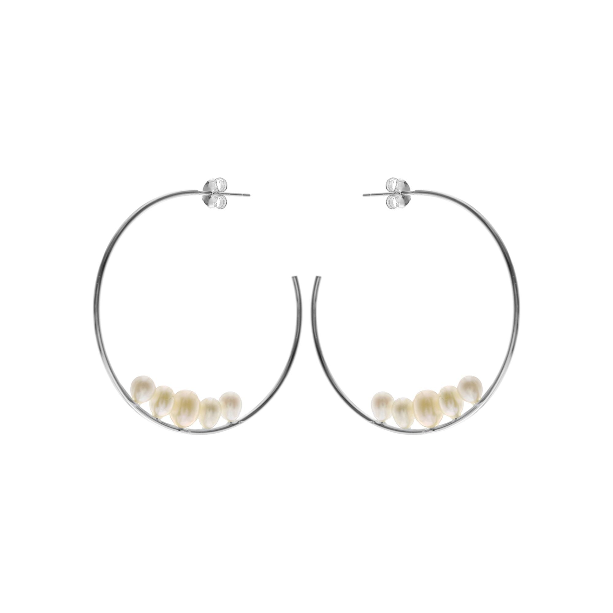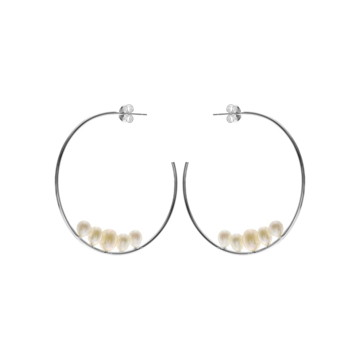 Stud topped 40mm 925 silver hoops with fixed freshwater pear