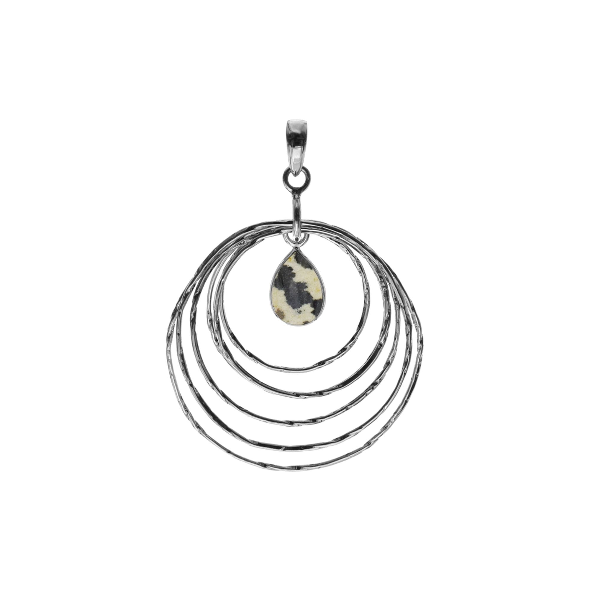 Silver teardrop dalmatian jasper with rings pendant
