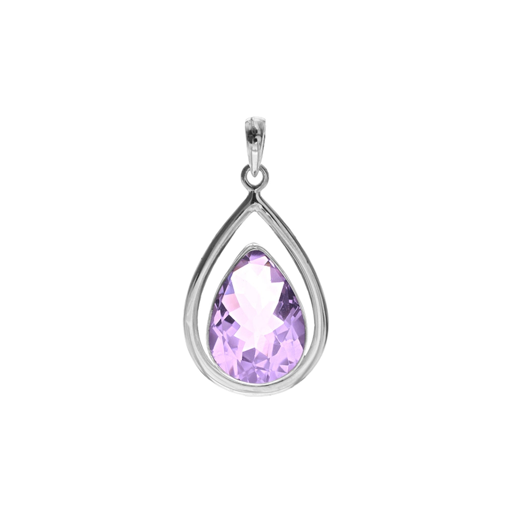 Teardrop faceted amethyst 10x15mm with silver frame pendant