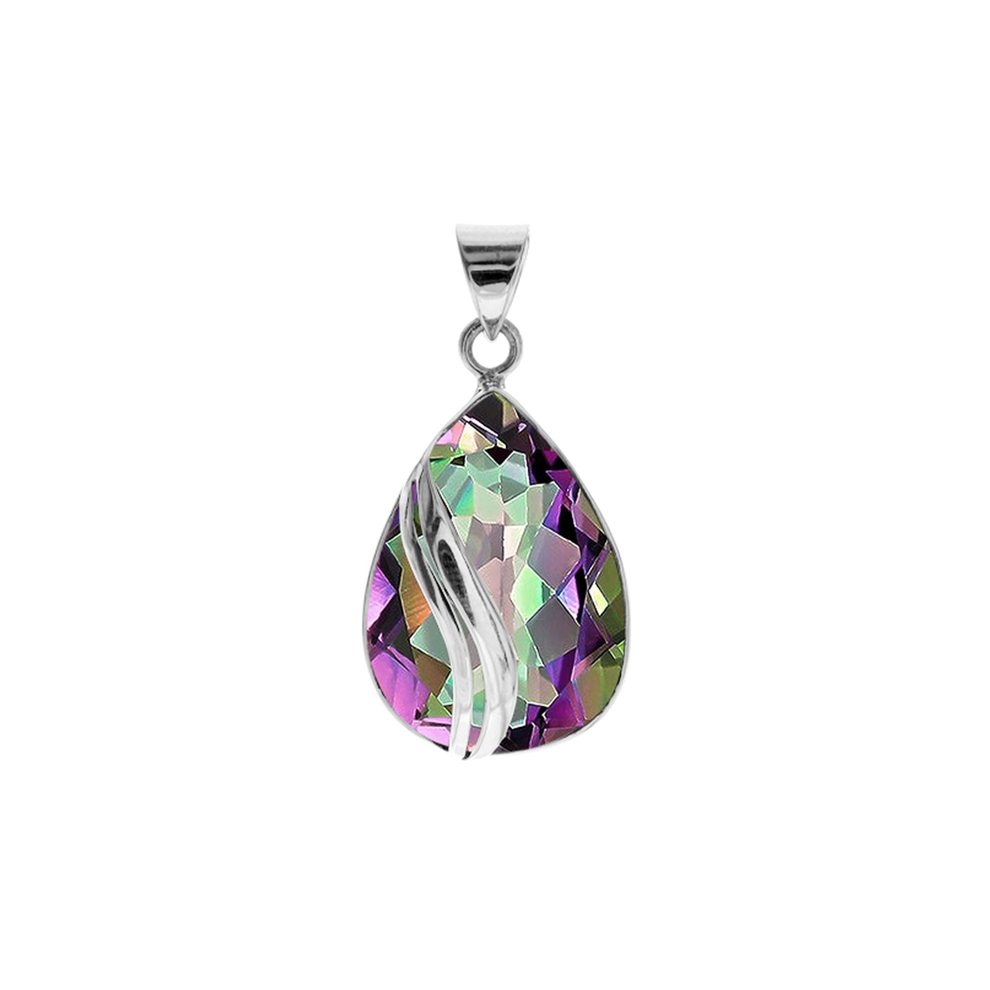 Teardrop mystic topaz pendant with two wave silver overlay