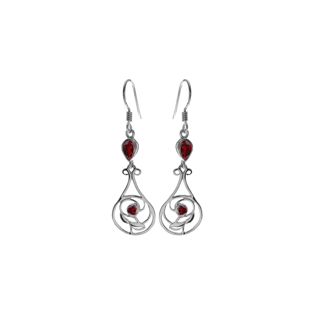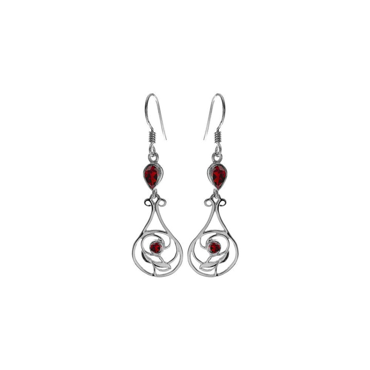 Tilly art nouveau teardrop & round garnet facet earrings