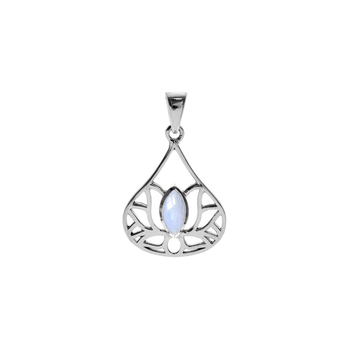 Marquis rainbow moonstone in lotus design silver pendant