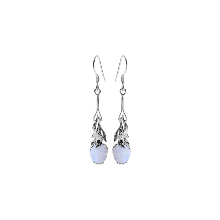 rainbow moonstone and silver stem and leaves design