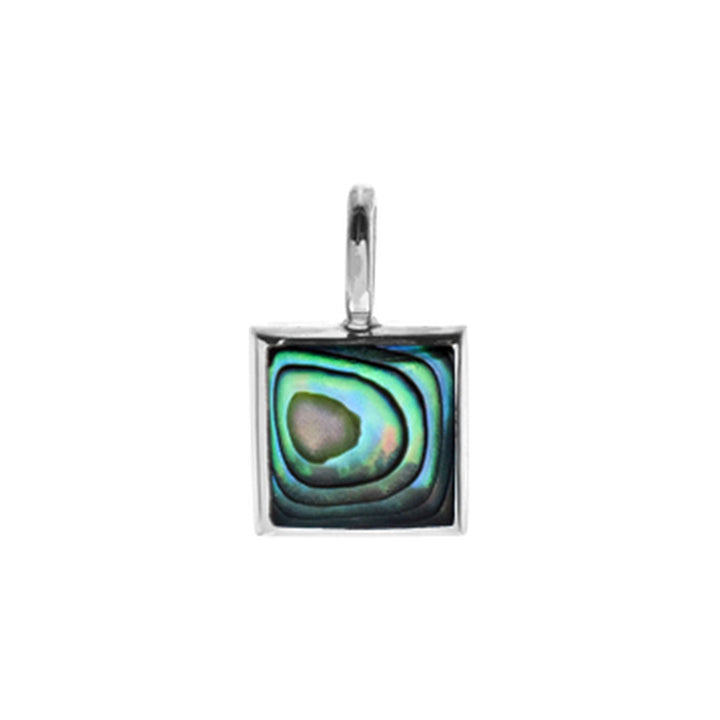 Square paua shell fixed bale pendant with a plain sterling silver surround