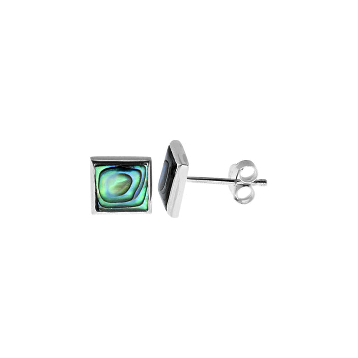 Square paua shell studs with a plain sterling silver surround