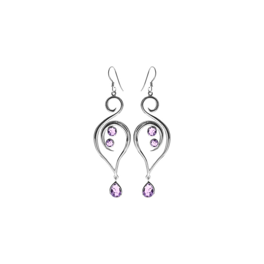 Large silver swirl faceted amethyst round and teardrop