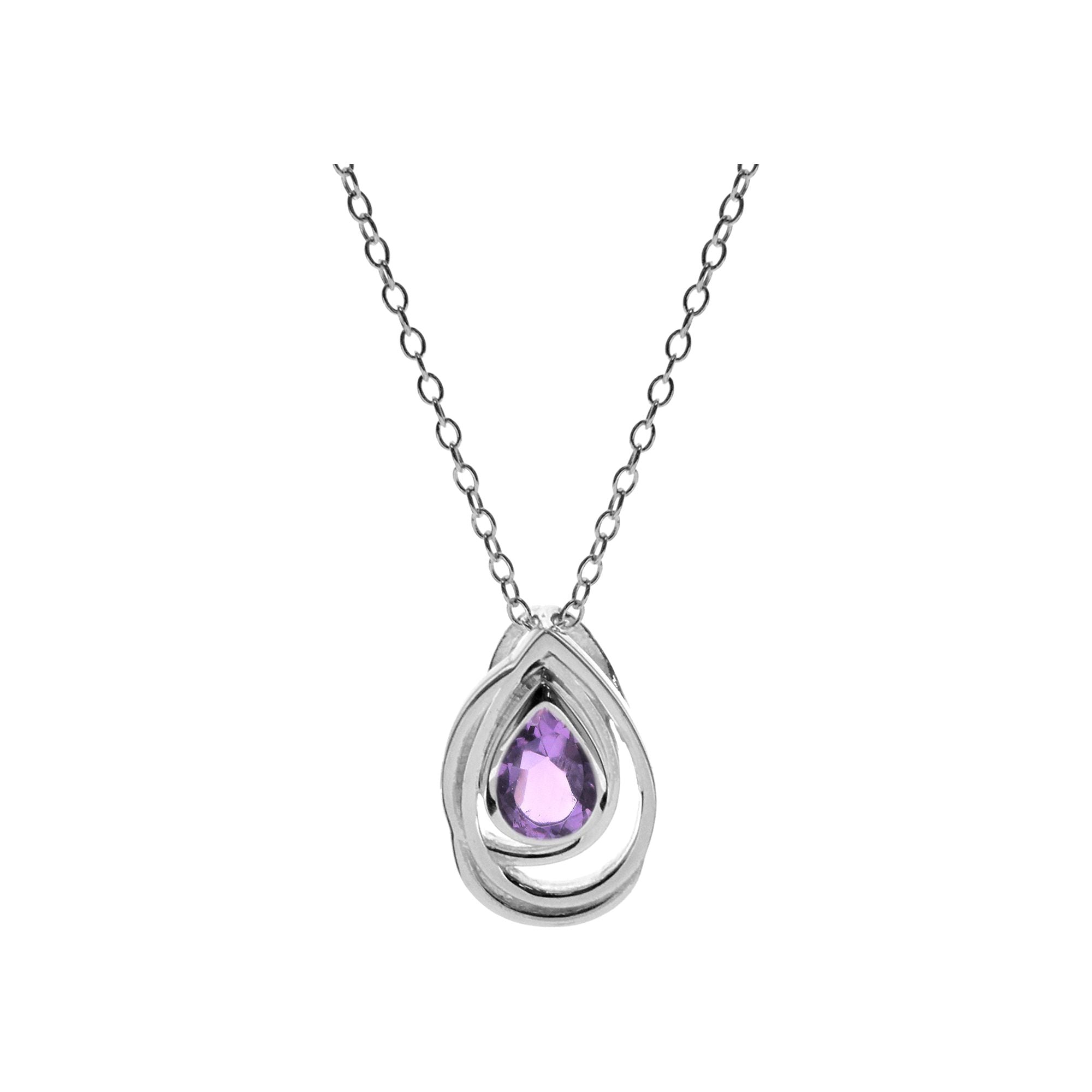 Overlapping wrapped teardrop silver and faceted amethyst necklace