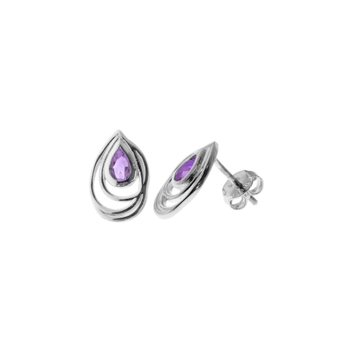 Overlapping wrapped teardrop silver and faceted peridot studs