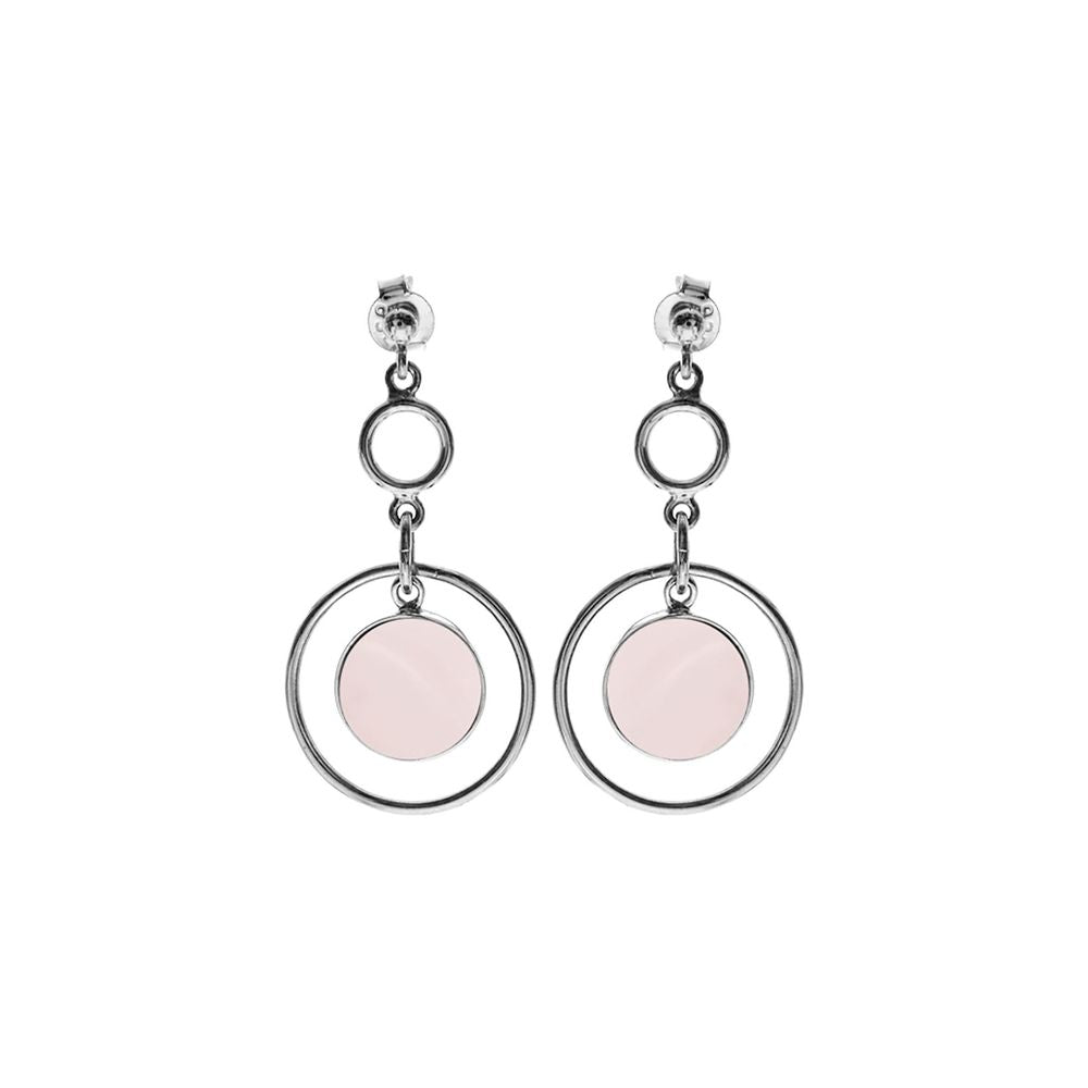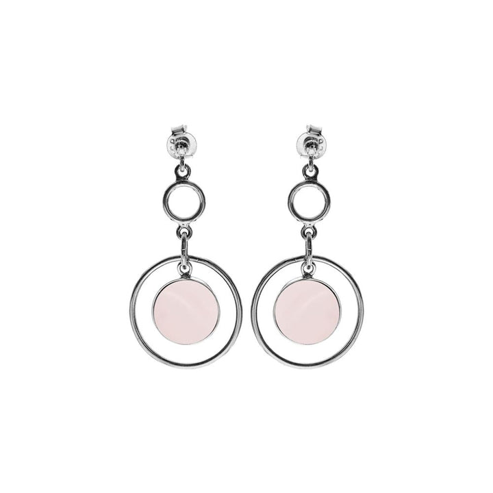 Stud topped silver multi hooped rose quartz earrings