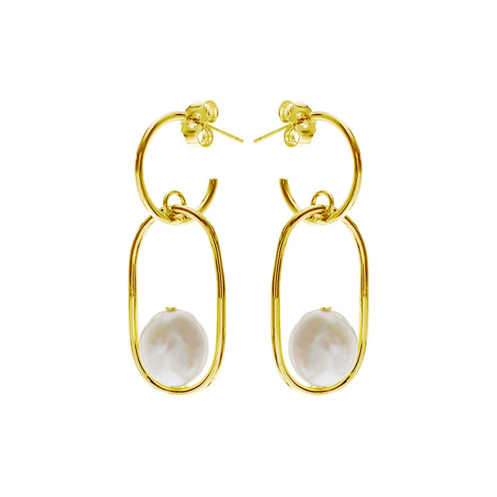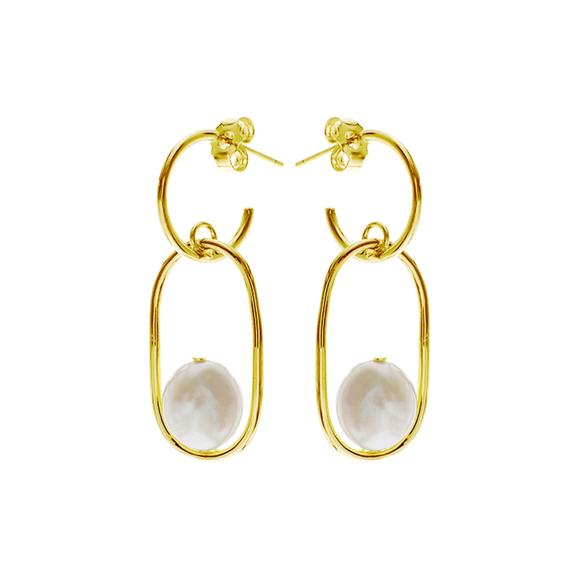 Yellow vermeil 13mm hoop and rounded rectangle with pearl