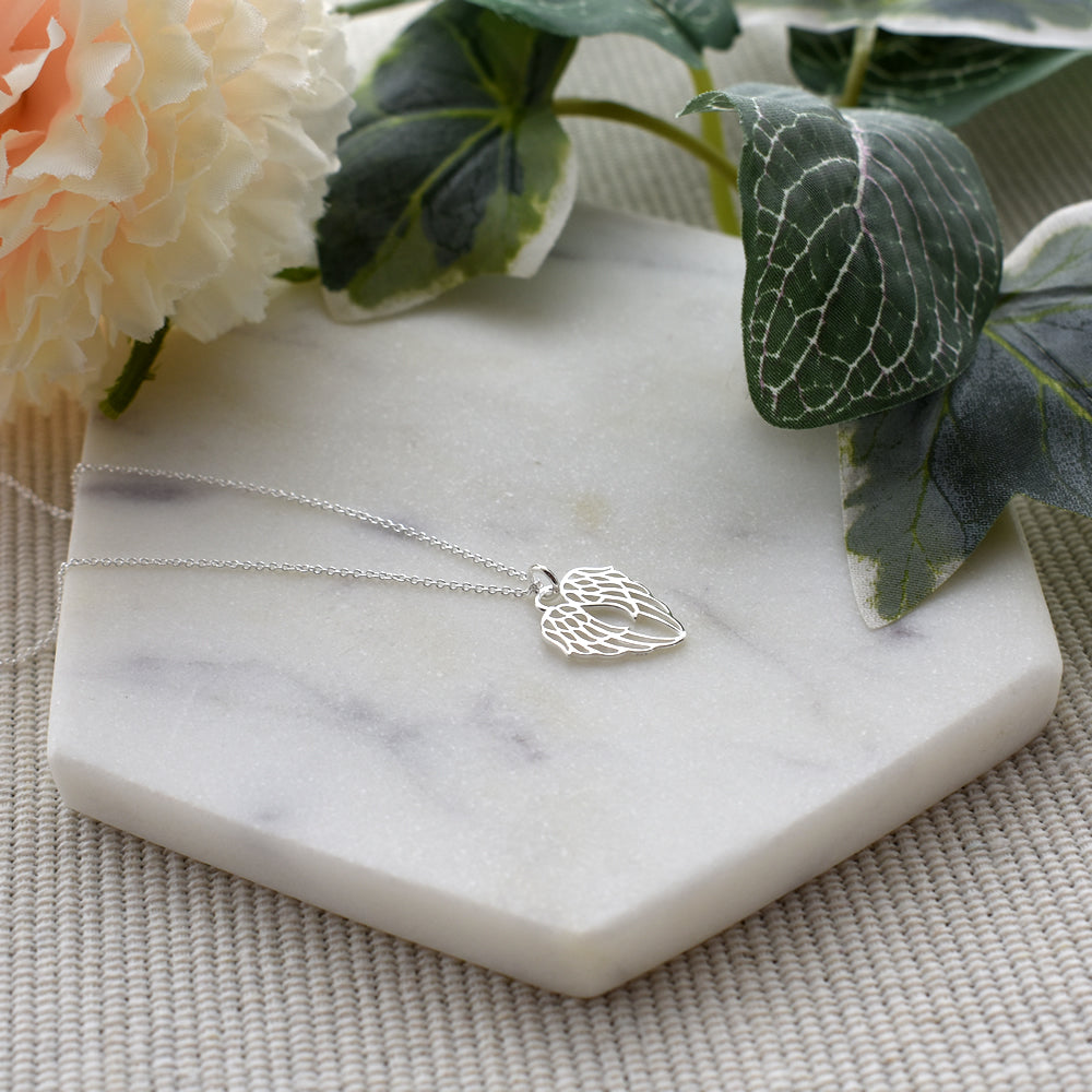 Silver cut out angel wings necklace